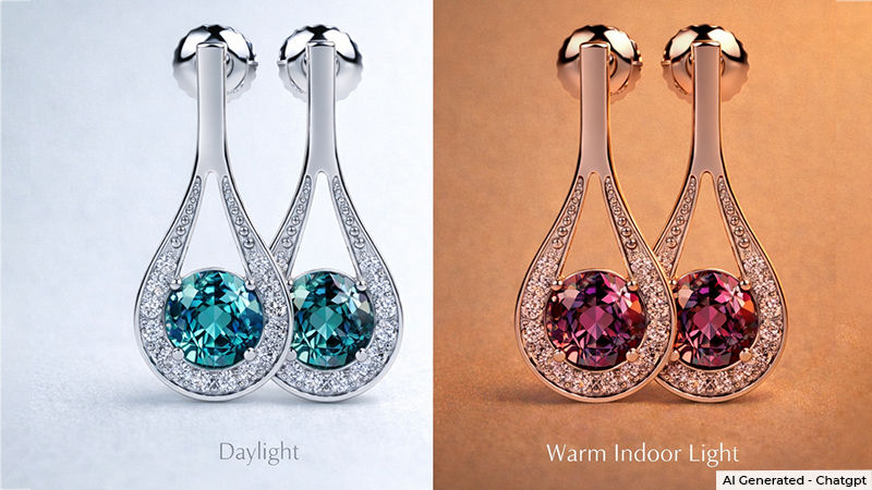 A genuine alexandrite shows a dramatic color change between daylight and indoor light. If your stone looks the same under both, it’s probably synthetic or imitation.